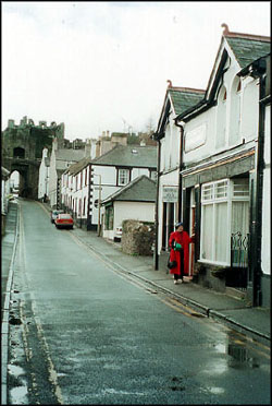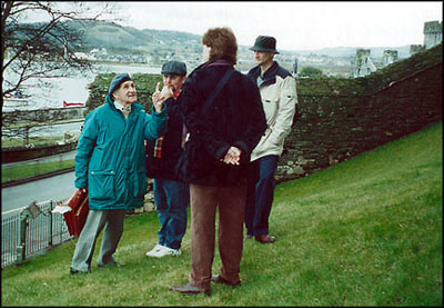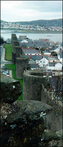 Becky and Awanna wandered around the narrow streets of town looking in shops while Daniel and I made the somewhat scary climb to the tops of the castle walls to see what could be seen. Once again I feel the need to comment on the British attitude about personal liability. Never, ever, in a million years would you be allowed to perform these sorts of death defying stunts (like climbing the walls of Conwy or perching yourself with only a low stone wall between you and certain death on the dome of St. Paul's in London or clambering down into the underground barrows in Avebury) here in the safe and sane, please-protect-us-from-ourselves, good old USA. The city walls of Conwy are completely missing in some parts, tumbled down into a jumble of rocks in others, minimal guard rails or safety barriers and the whole thing was wet and quite slippery. It would be VERY easy to fall the 20 to 30 feet down bouncing off the rocks and seriously hurt yourself. The British seem to feel if you're fool enough to risk your neck doing something stupid or simply don't take the proper precautions while doing it then just go right ahead but don't come crying to them about it. I find this sort of attitude quite refreshing and I heartily applaud them for it. Darwinian theory at work.