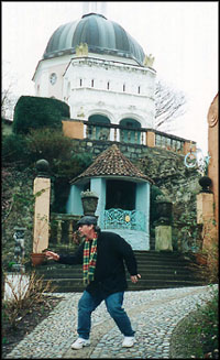 Out of the mountains and down to the west coast to visit the town of Portmeirion. Portmeirion is best known as the filming location of the cult TV show, The Prisoner. I won't go into a lot of negative, what-a-rip-off sort of stuff here but the bottom line is that it's expensive and pretty much a waste of one's time. See picture below for me doing furtive "Prisoner" moves at the location.